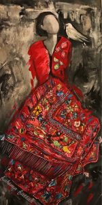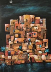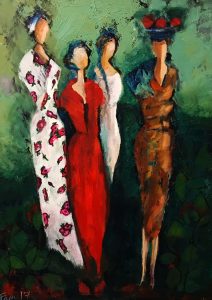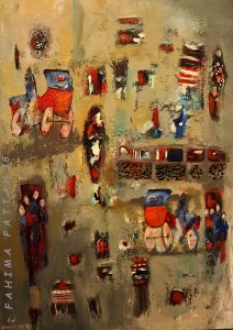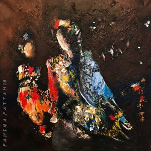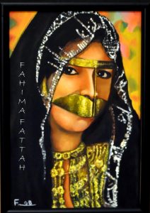 Fahima Fattah artworks imagination and senses are expressed through her colorful paintings inviting the viewer to get carried away inside the artist’s head. The human face and figure are her preferred subject.