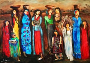 She believes that women are half the community and they should be represented in every part of life. She views them as the backbone for every family, that’s why in many instances she paints them as tall as a palm tree to indicate their glory and geneoristy.