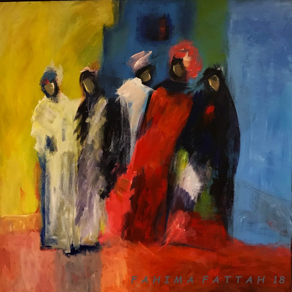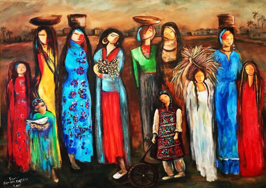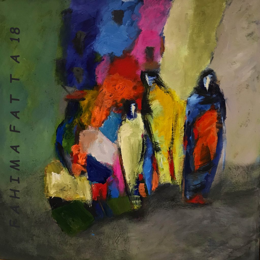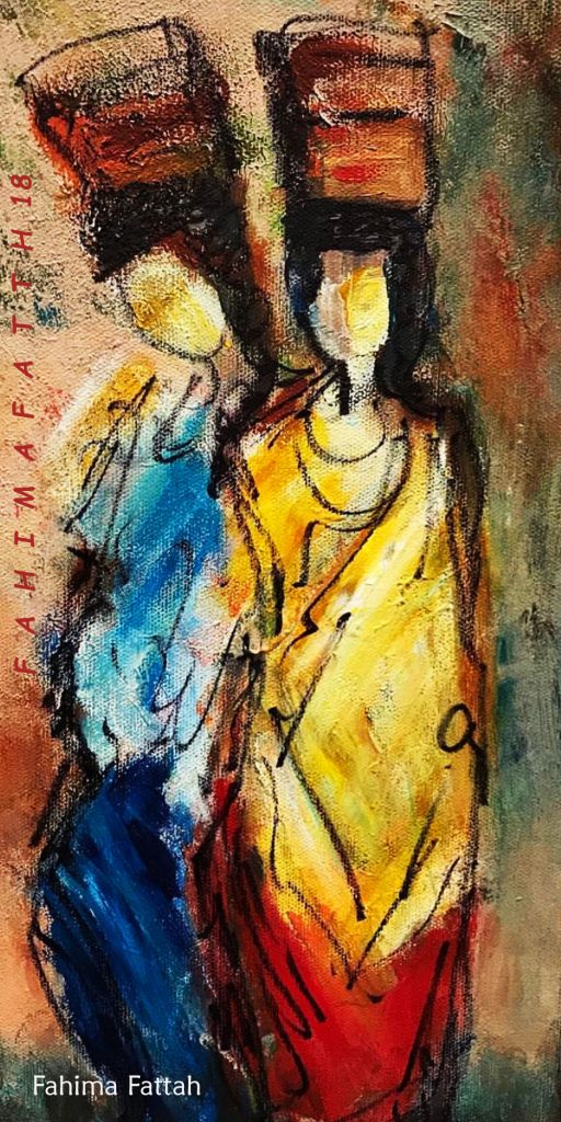Fahima Fattah artworks imagination and senses are expressed through her colorful paintings inviting the viewer to get carried away inside the artist’s head. The human face and figure are her preferred subject.