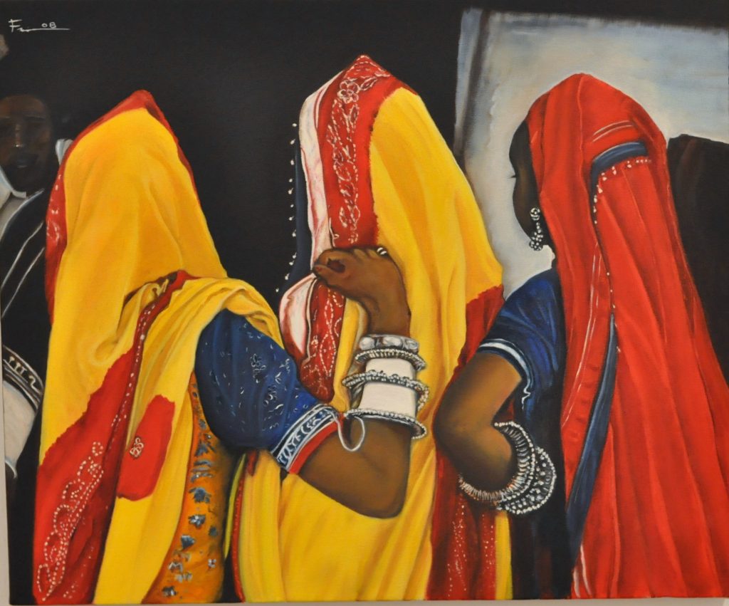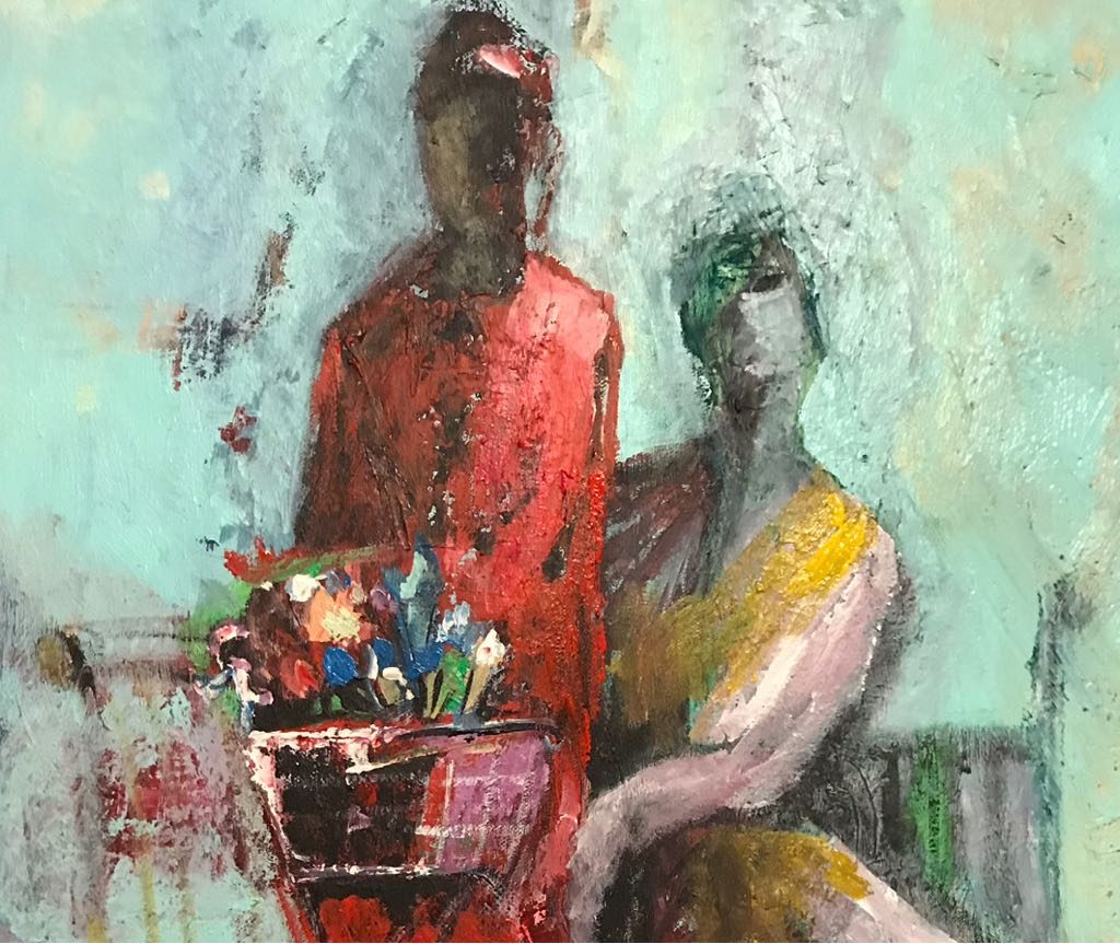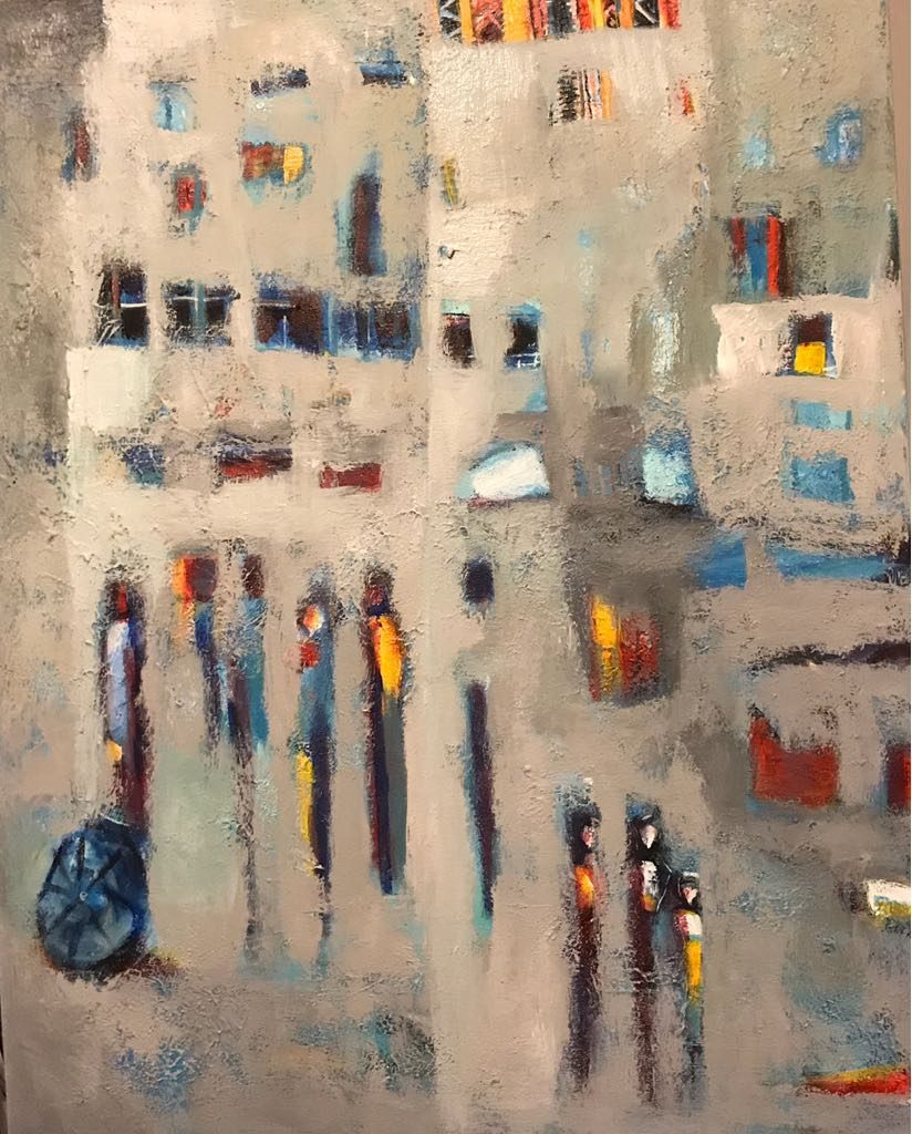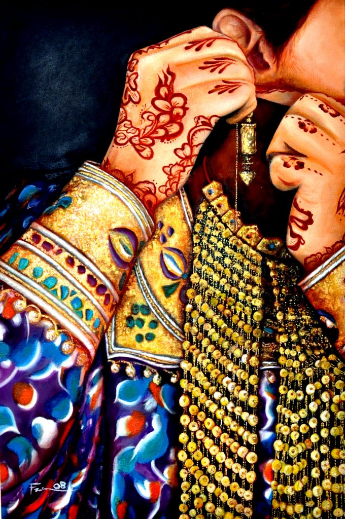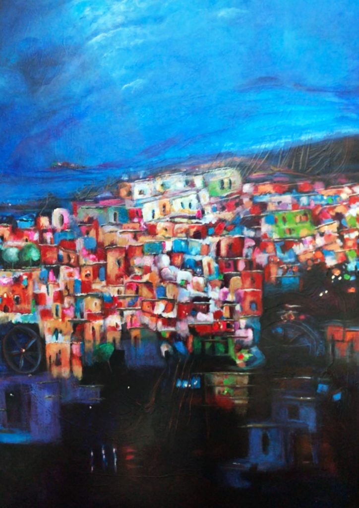Fahima Fattah artworks imagination and senses are expressed through her colorful paintings inviting the viewer to get carried away inside the artist’s head. The human face and figure are her preferred subject.